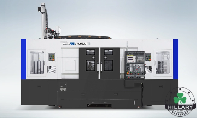 FULL TURN-KEY SOLUTION HYUNDAI WIA LF2600/2SP Features High-speed gantry loader for cycle time reduction. Split bed prevents vibration transfer. Symmetrical headstock to prevent thermal distortion. Box Guideways used on all axis